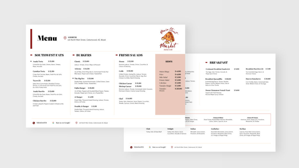 I developed a unified visual system by crafting a clear brand voice and cohesive messaging. This included designing a distinctive logo, color palette, typography, and comprehensive brand guidelines. The identity was applied consistently across all touchpoints — from menus, signage and social media to print materials — ensuring a seamless brand experience.